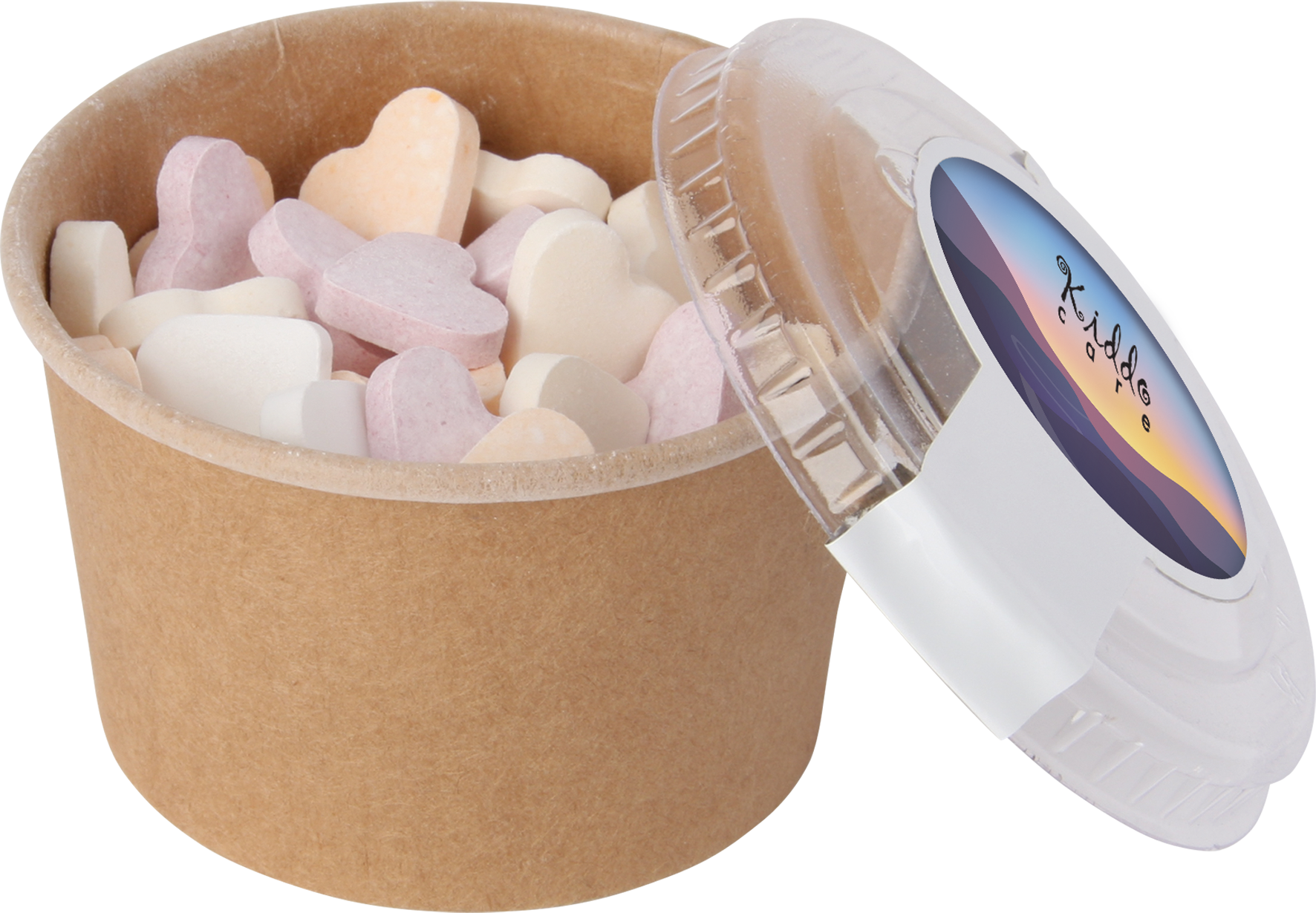 Kraft cardboard tub with fruit heart sweets (90ml)
