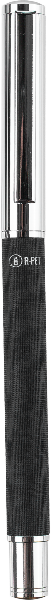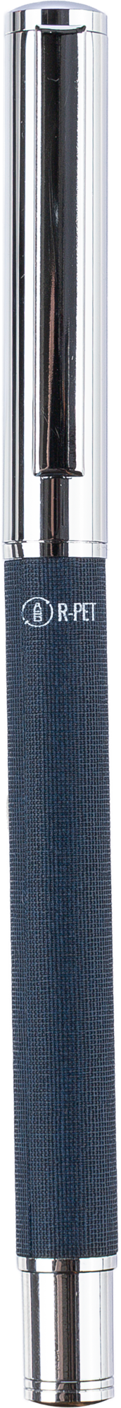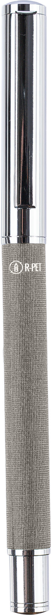 Brass and rPET rollerpen with an rPET logo on the body. Individually packaged in a brown cardboard box.