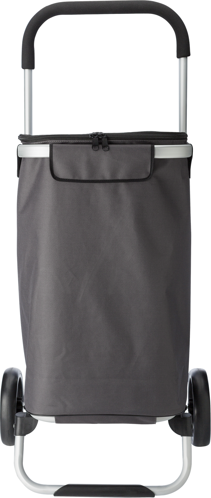 Polyester (320-330) cooler, shopping trolley with aluminium frame and an EVA foam grip. The trolley needs to be self-assembled before use. 20L Capacity.