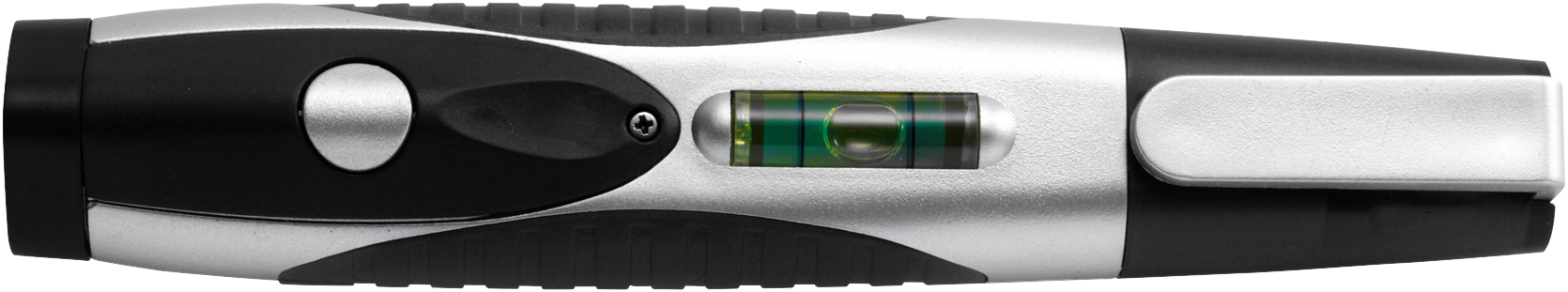 Mini plastic tool set with four different screw bits two cross recess and two flat head including spirit level and a blue LED light. Batteries included.