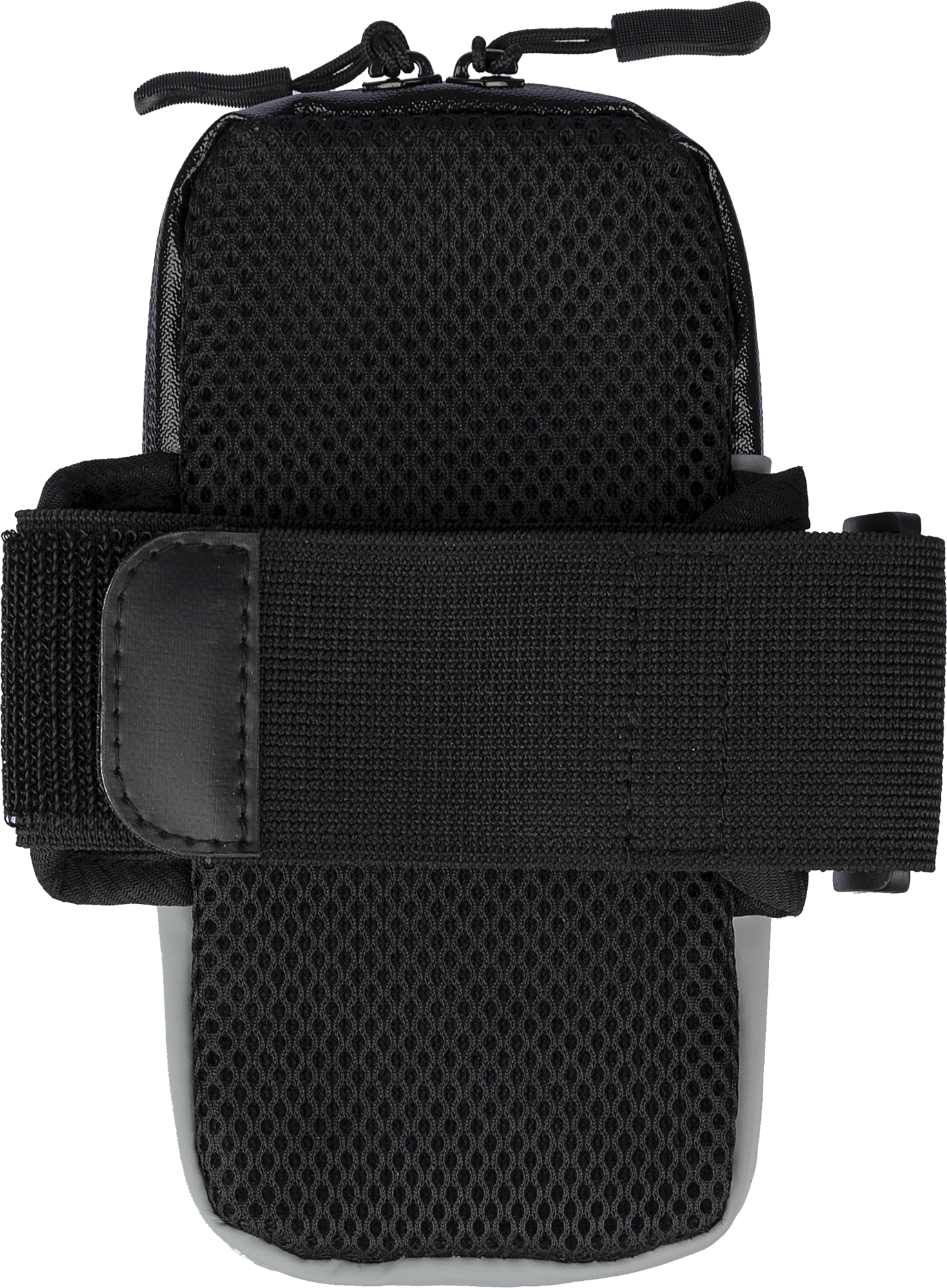 Polyester bag with a PU coating, designed to be attached to your arm. Includes a large waterproof zipped compartment with a small pocket inside, and a waterproof zipped pocket on the front.