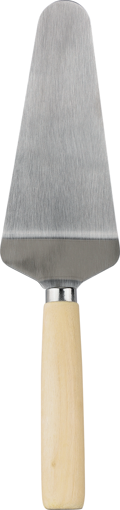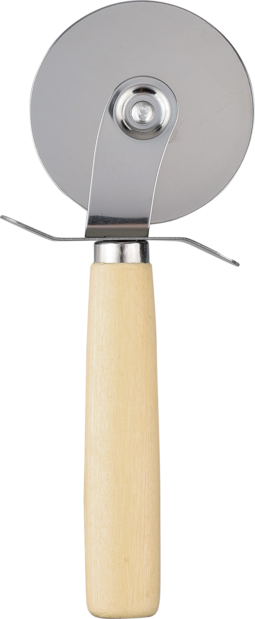 Bamboo pizza board with handle and pre-cut slice guides for easy serving. Includes a stainless steel and beechwood pizza cutter and spatula. Individually packaged in a brown cardboard box.