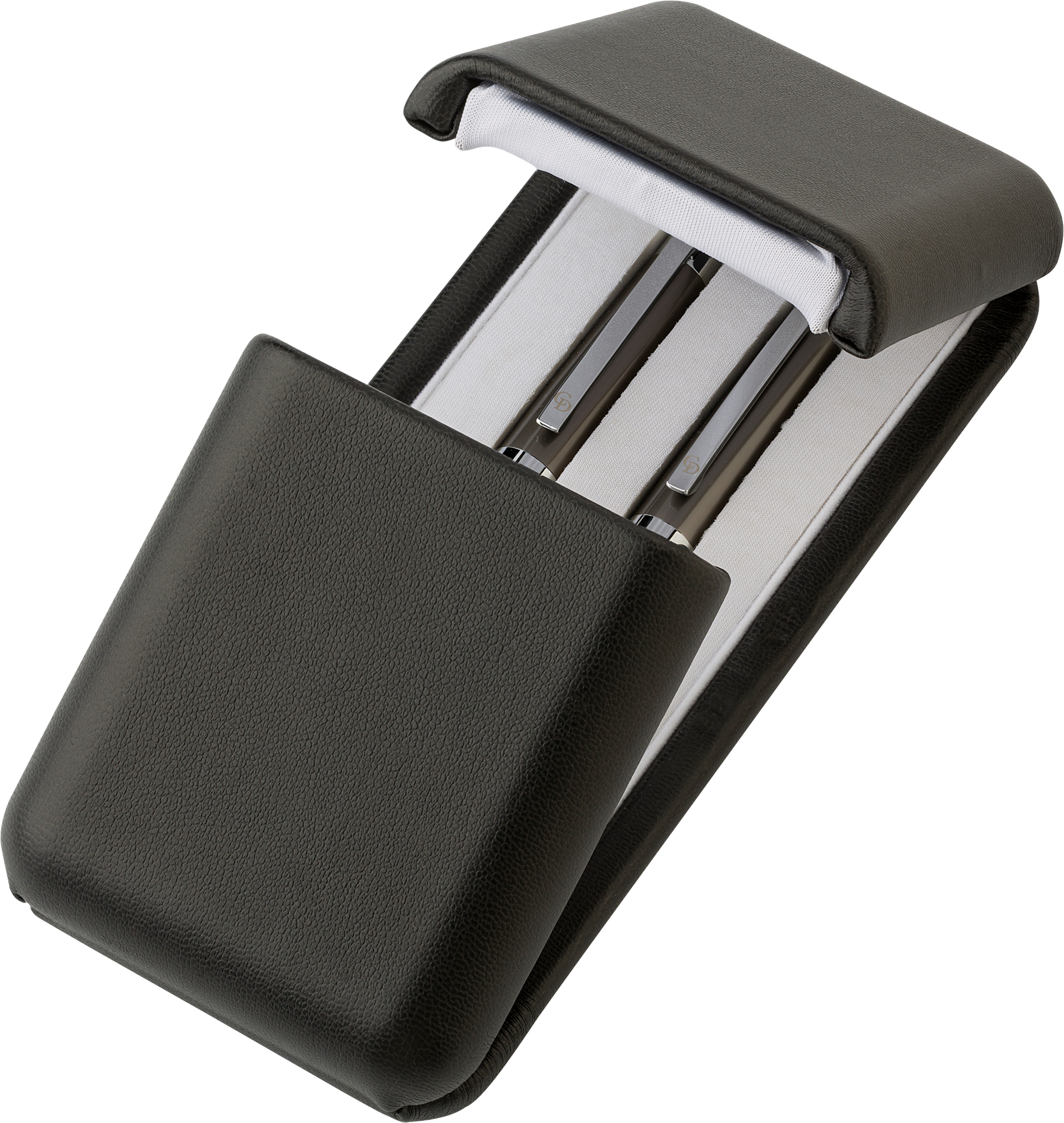 Charles Dickens® pen set, consisting of a grey metallic ballpen and roller pen both with black ink; supplied in a deluxe presentation box.
