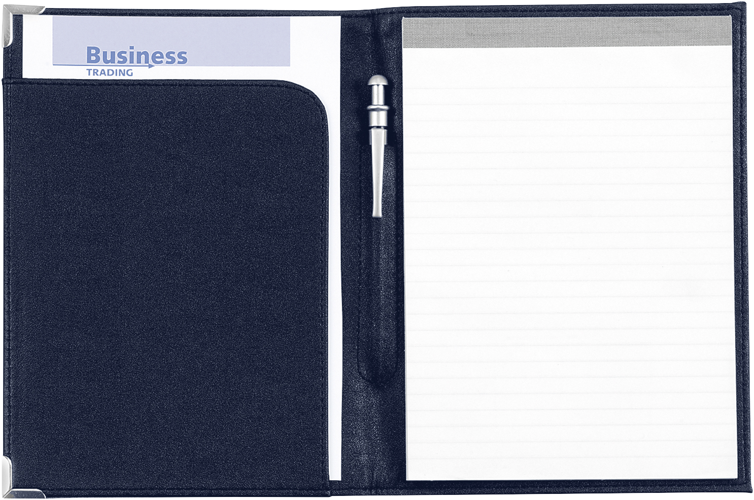 A5 PU Conference folder, note pad (item 8500) & pens not included, colours: blue/silver gilt corners, black/gold gilt corners.