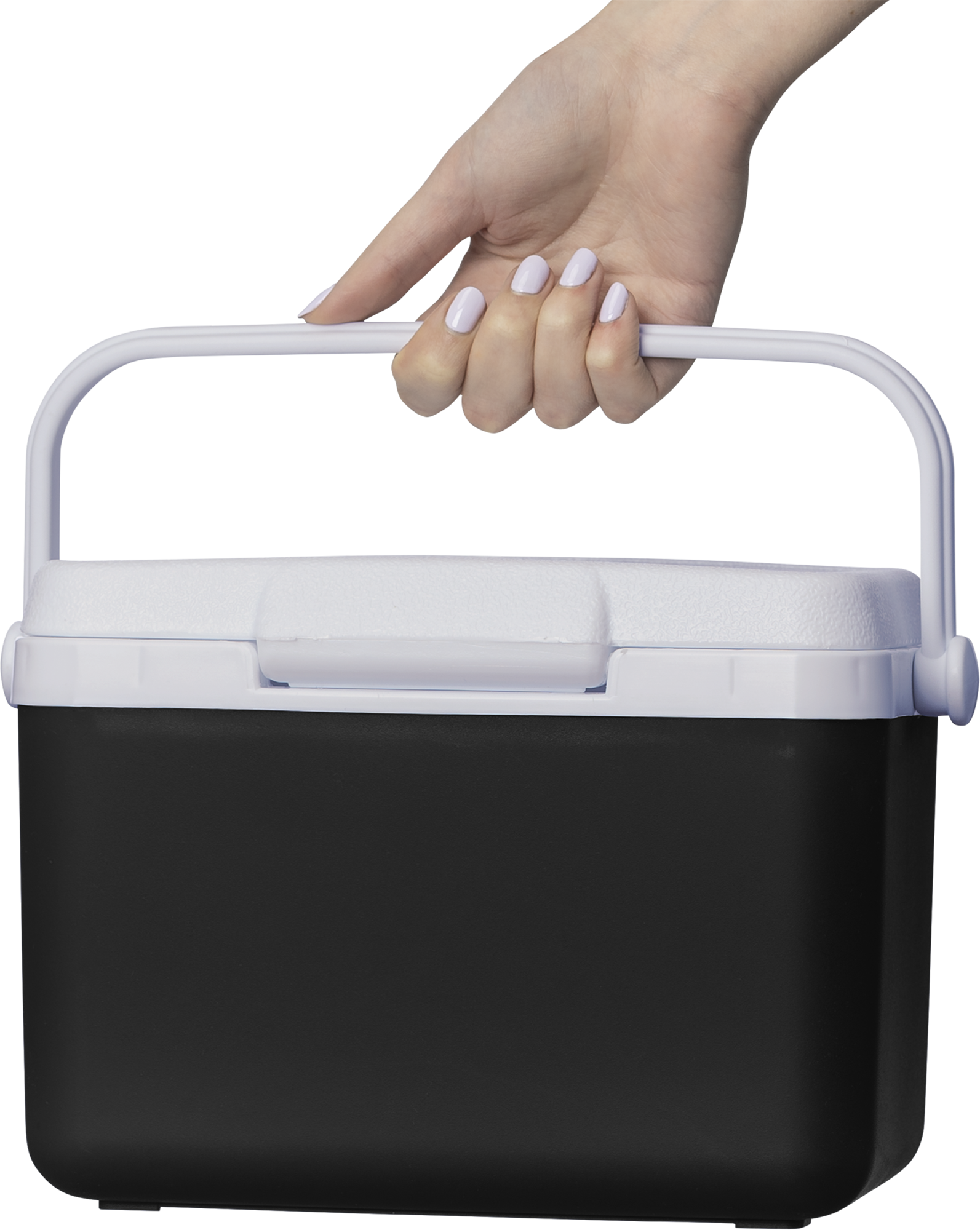 Cooler box with 4 litre capacity. Made with durable, lightweight materials (PU/PE) that resist moisture, chemicals and everyday wear for long-lasting performance. Designed to keep contents warm for 4 to 5 hours or cold for 8 to 12 hours. Features a sturdy handle for easy carrying.
