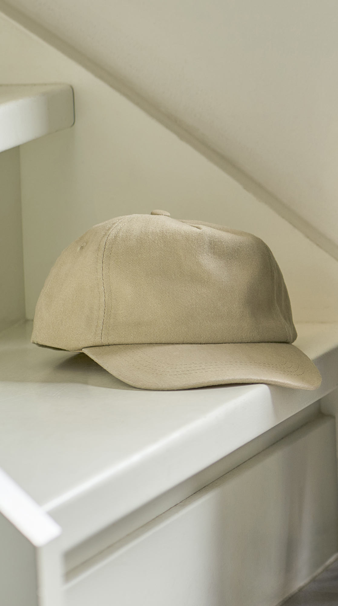 Cotton 5 panel cap with a washed finish and adjustable brass buckle