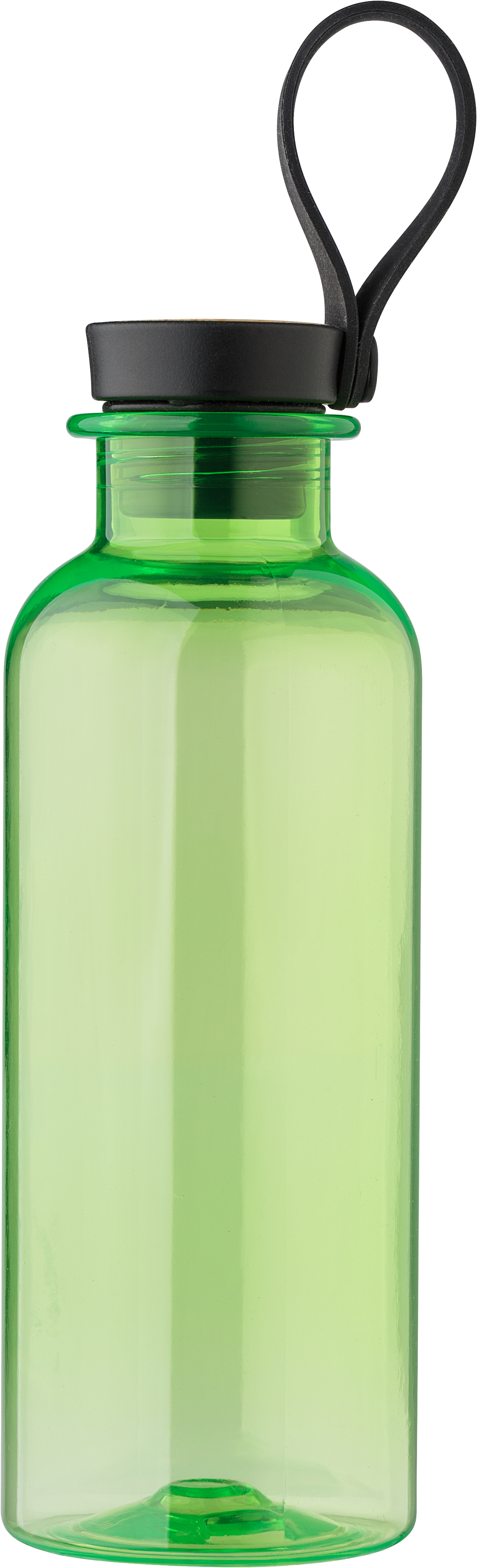 Drinking bottle with a bamboo inlayed lid and silicone carrying strap. 500ml. Not dishwasher safe.