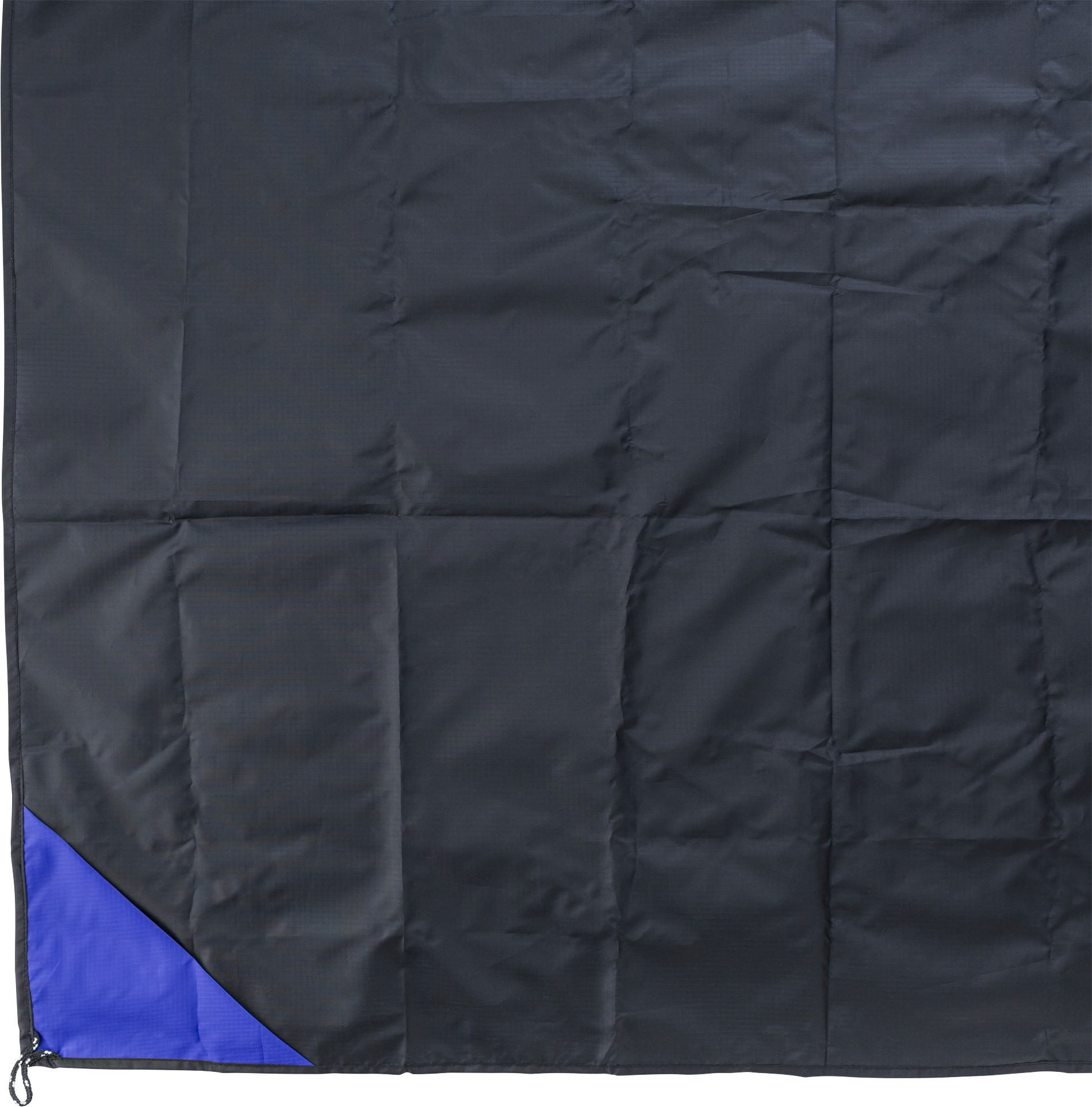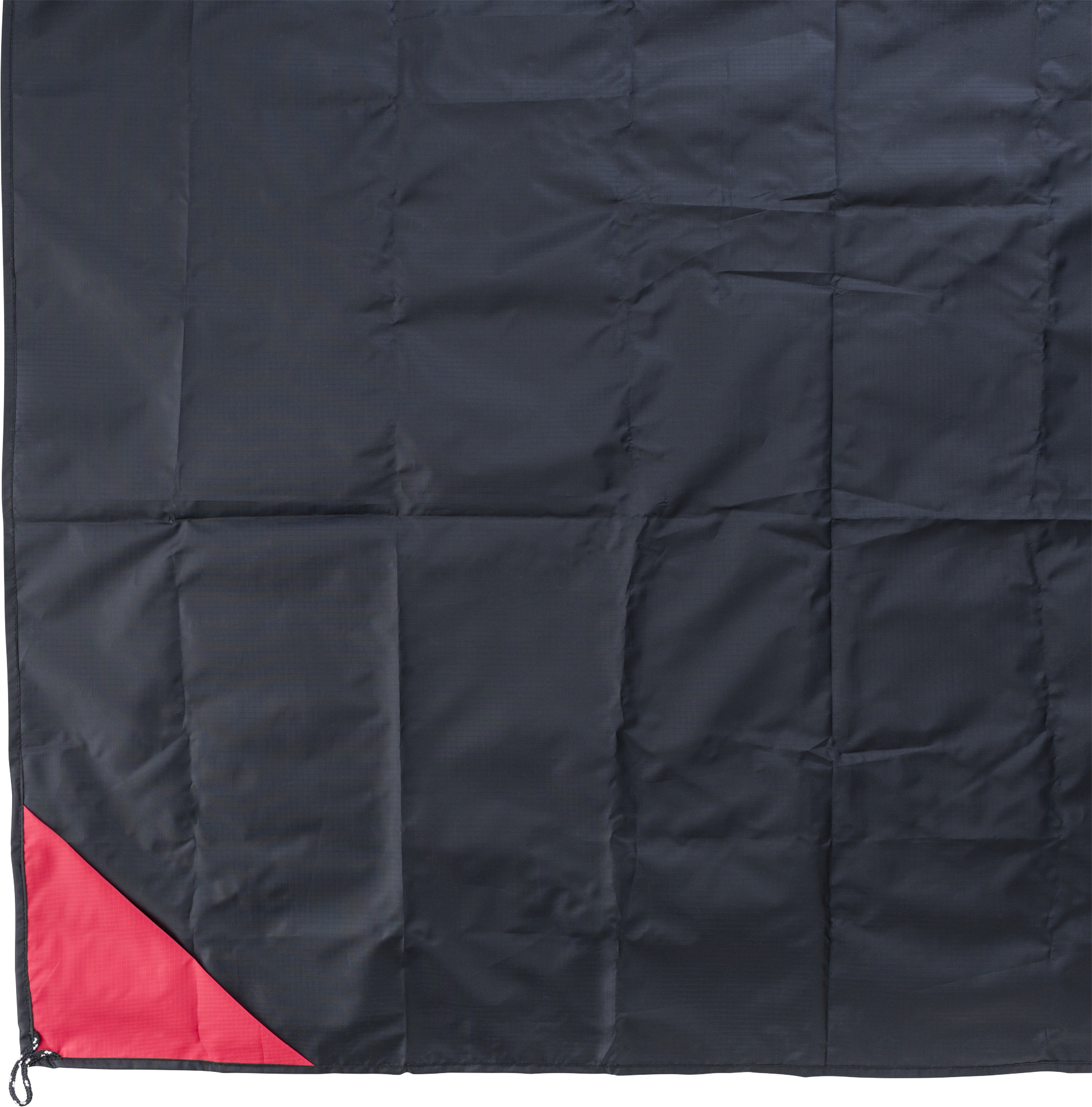 Polyester foldable blanket packed in a pouch. Unfolded size 140 x 100 cm.