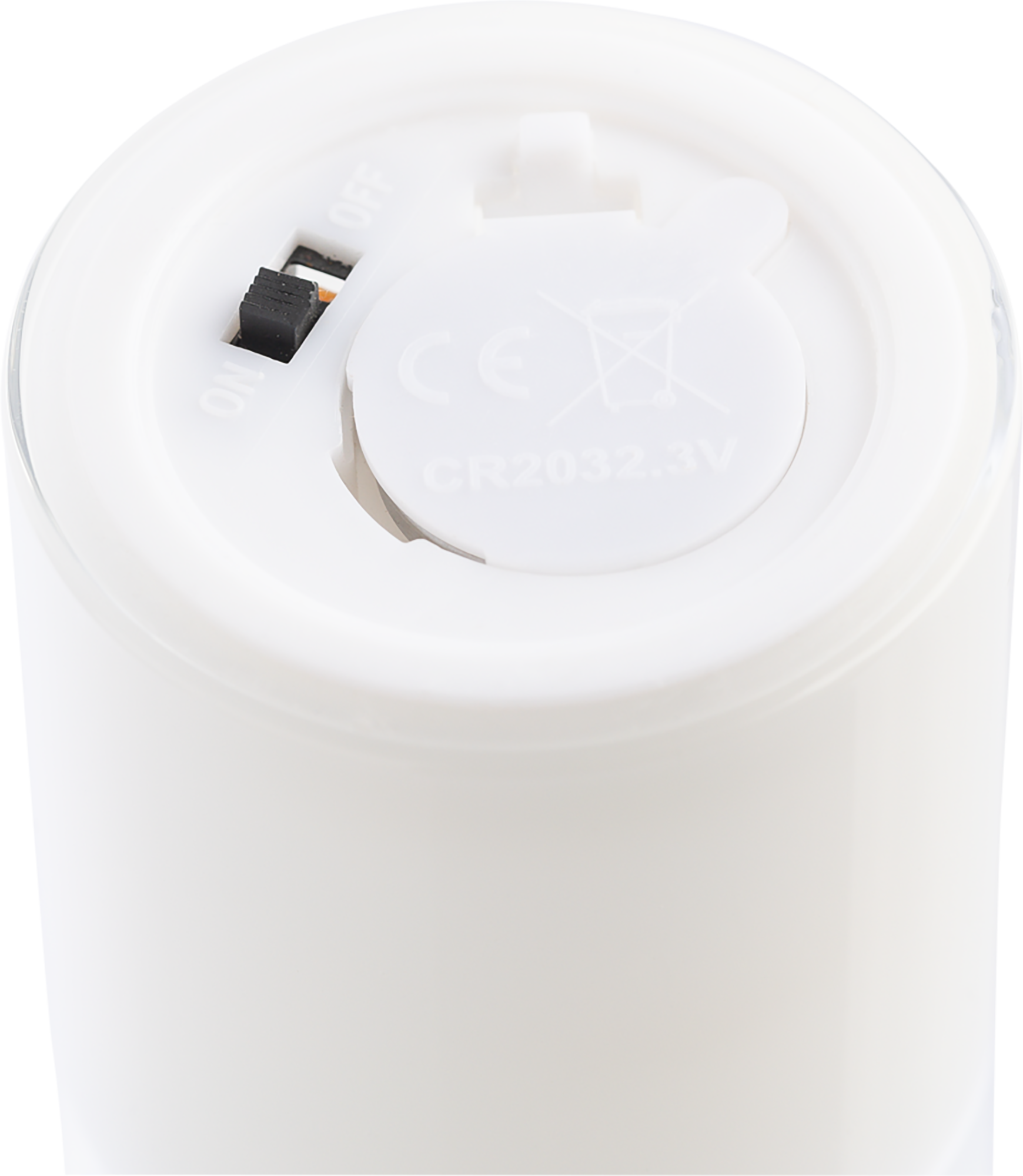 LED wax candle in glass holder with realistic flame effect. Includes battery and offers approximately 100 hours of burn time. Designed for indoor use. Individually packaged in a brown cardboard box.