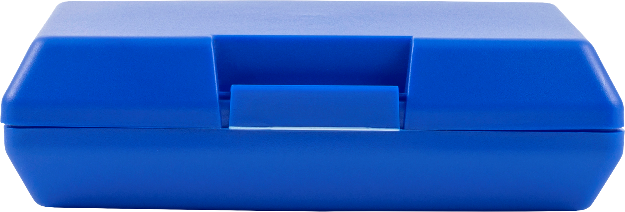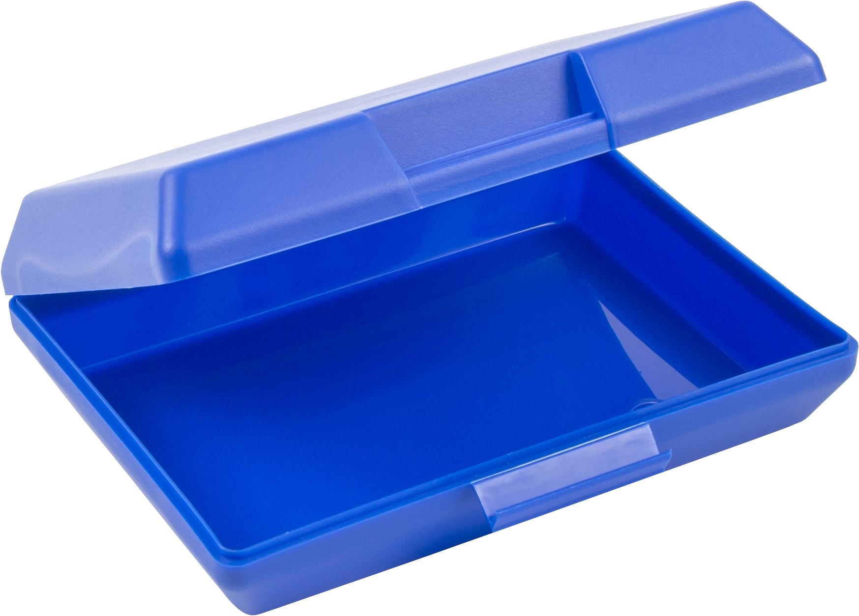 Plastic lunch box. The sides of the top and bottom are bevelled. Size: 17 x 13 cm.