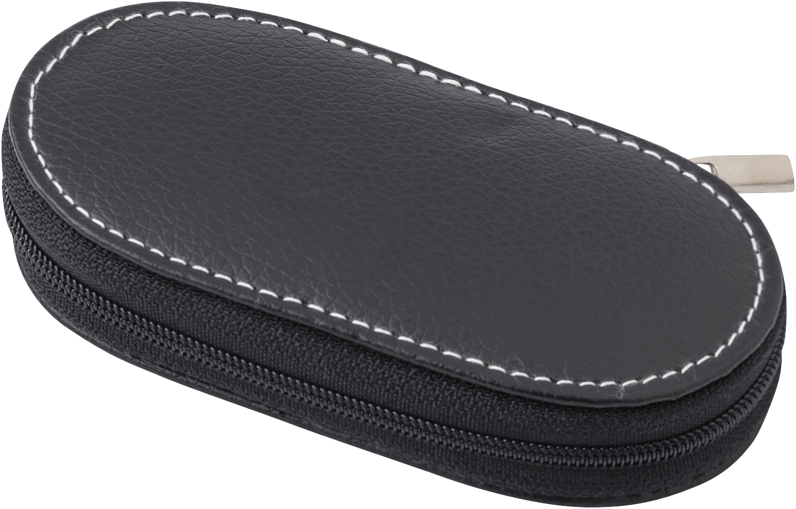 Manicure set, including: scissors, nail file, nail clippers, cuticle pusher and cuticle implement.