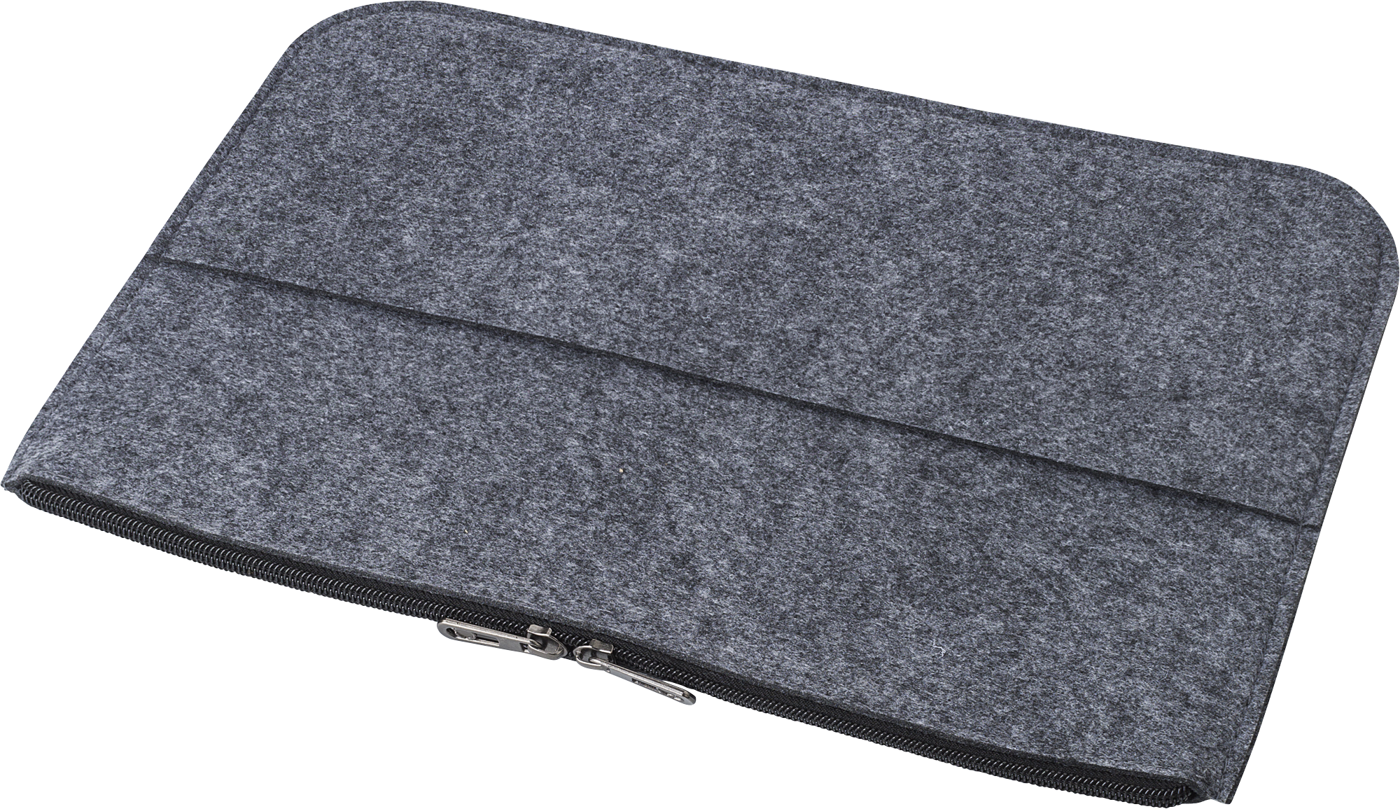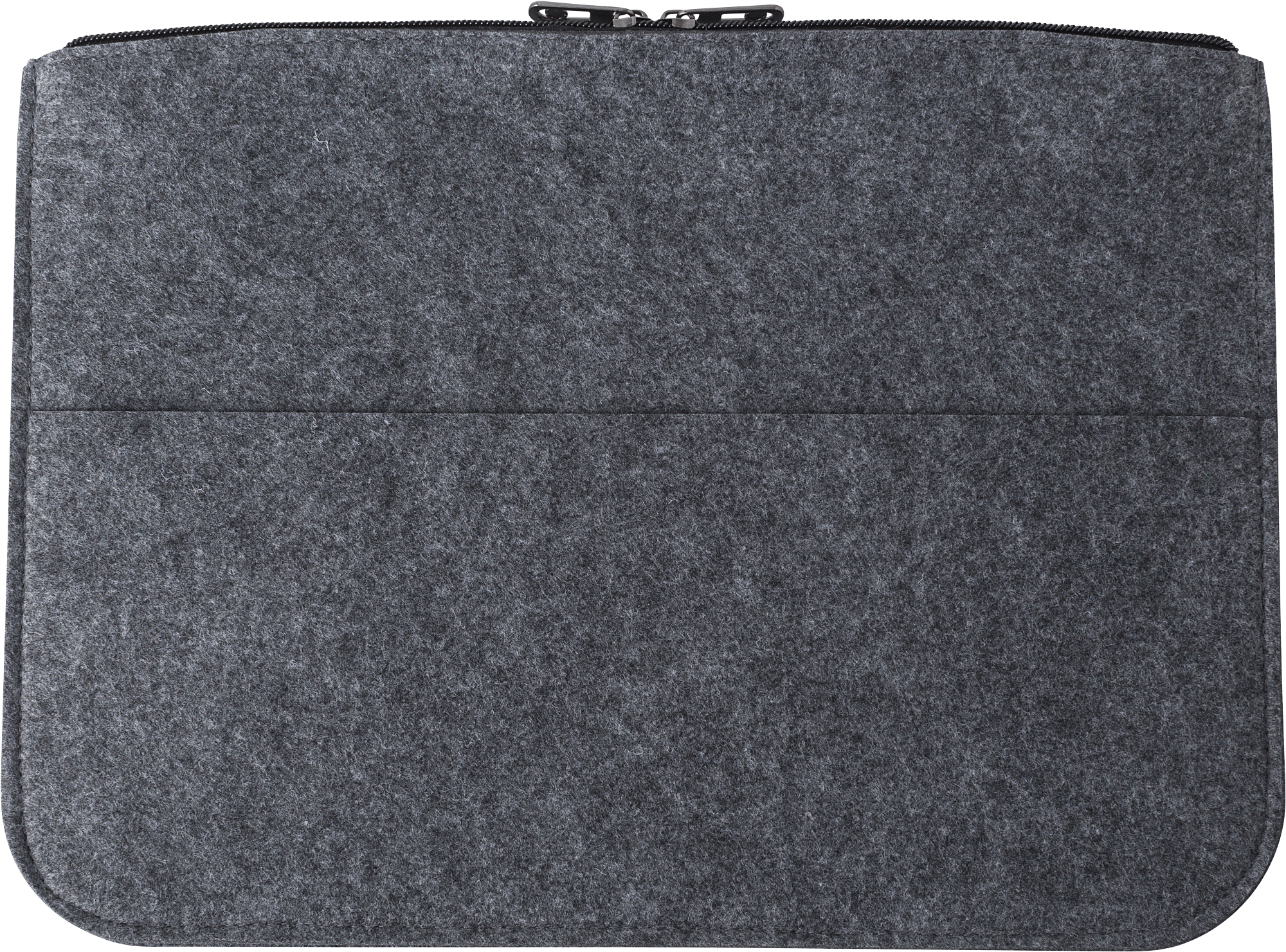 The RPET felt laptop pouch is designed to hold a 14-inch laptop securely. It features a zipped closure, providing easy access and protection for your laptop. Additionally, the pouch has a small front pocket, allowing you to store smaller accessories like a charger, mouse, or notepad. This eco-friendly and stylish pouch is a practical choice for keeping your laptop safe and organized while on the move.