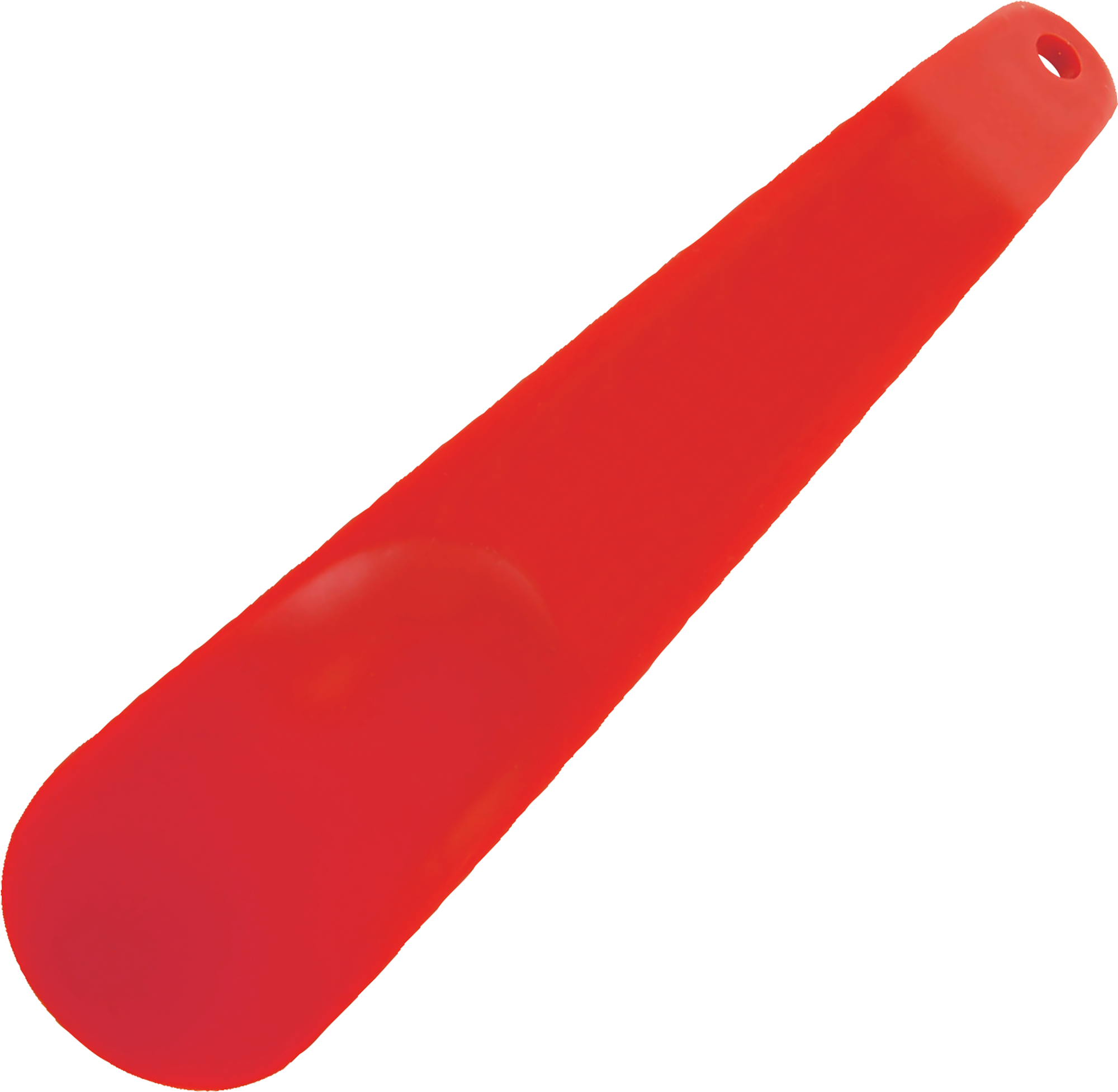 A perfectly shaped plastic shoehorn to assist sliding into a snug-fitting shoe.