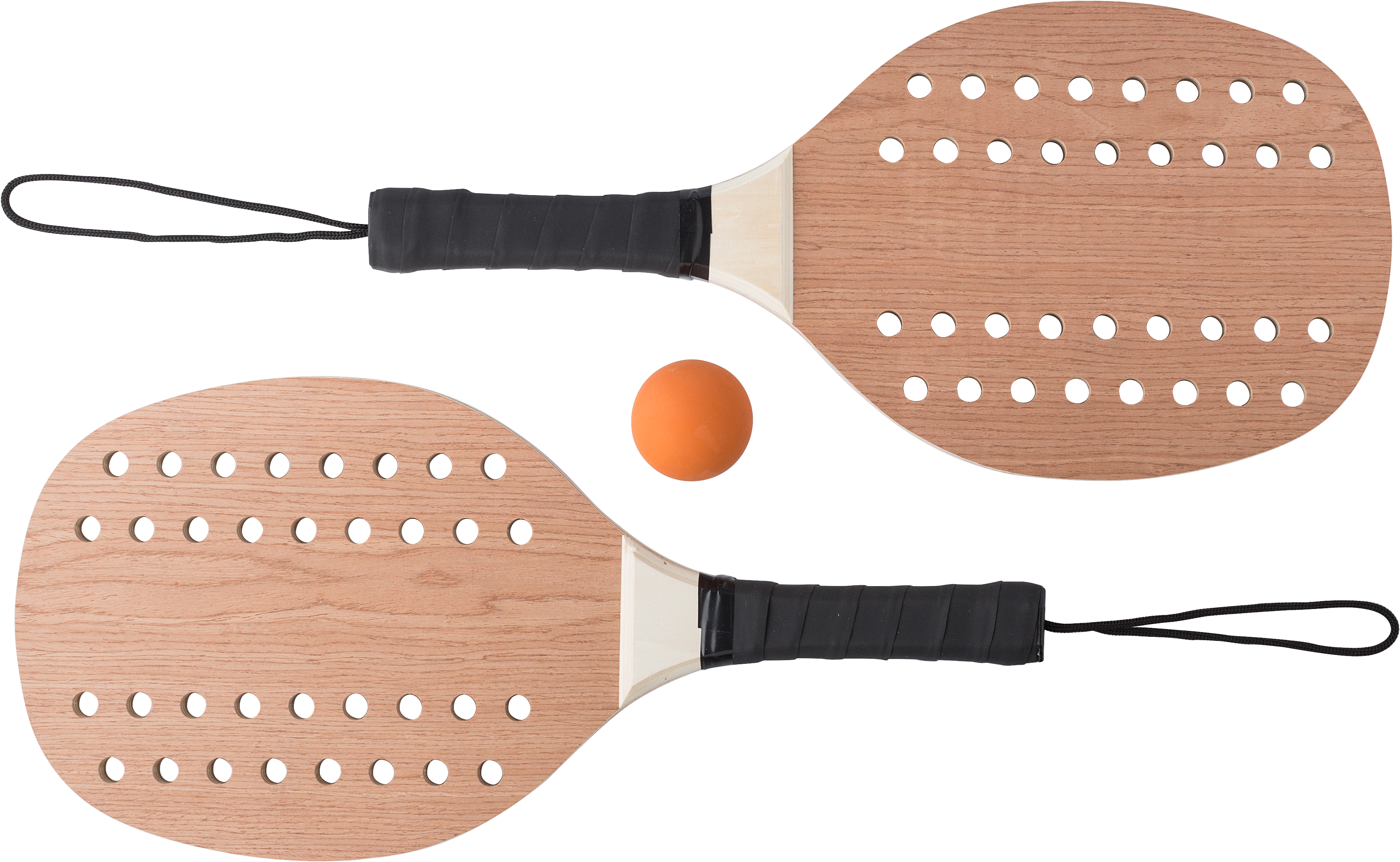 Rosewood tennis set with plywood and PU taped handles. Packed in a cotton bag.
