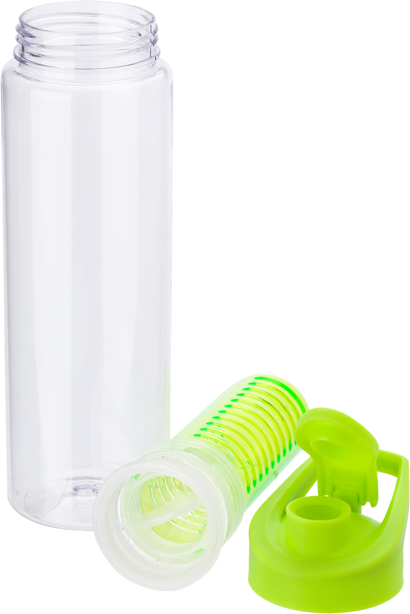 Tritan water bottle (700ml) with fruit infuser. The screw cap has a drink opening