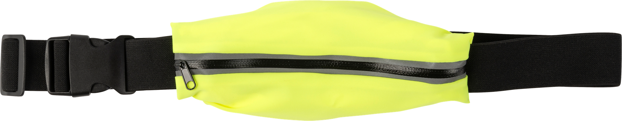 Water repellent polyester waist bag with adjustable elastic band. Maximum size: 97 cm.