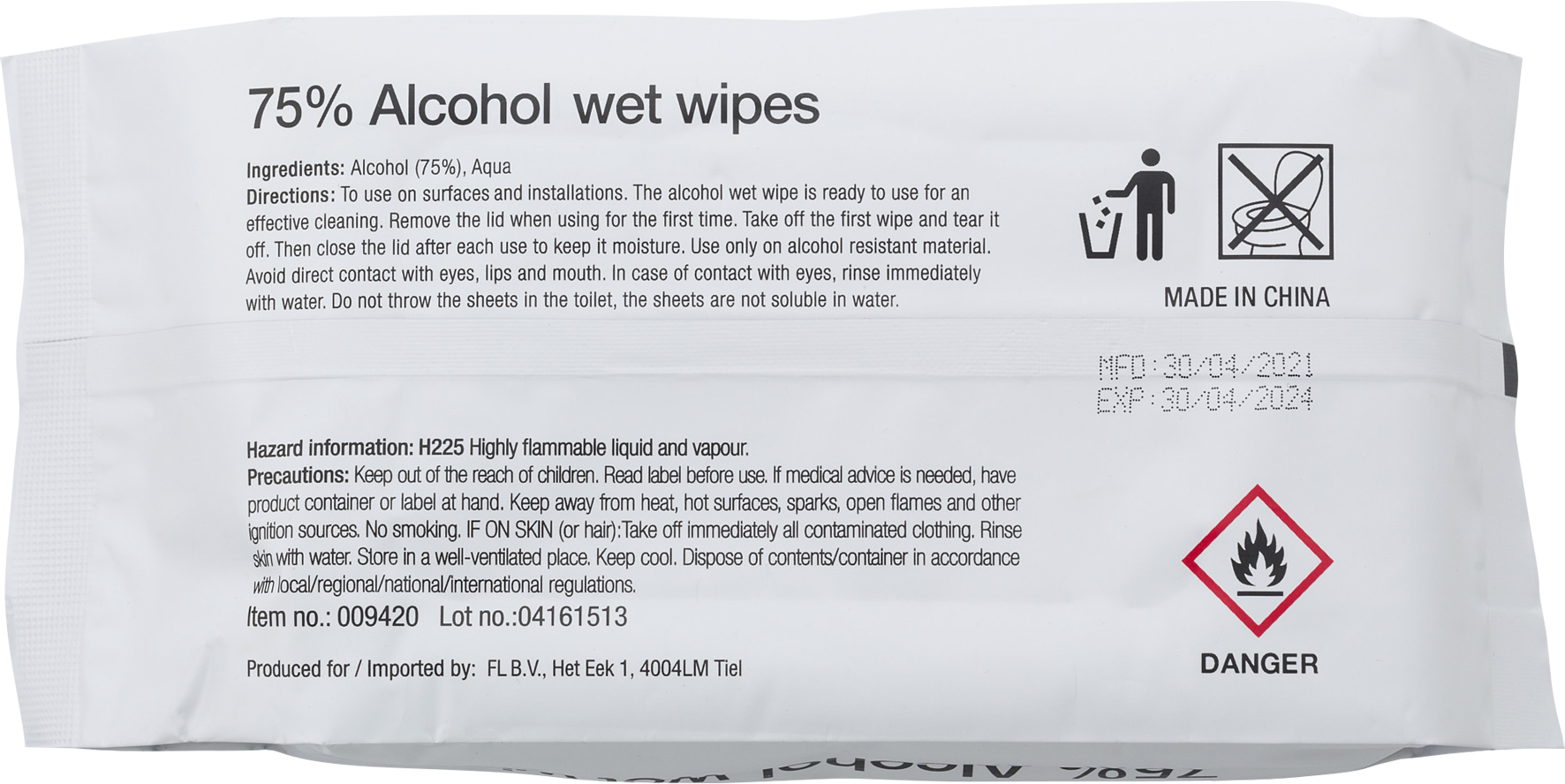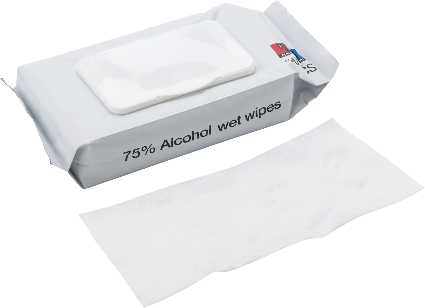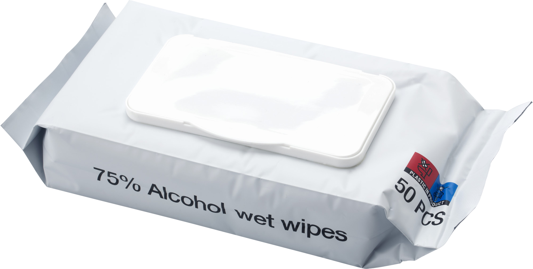 Sealed pouch with 50 pcs of wet tissues (75% alcohol).