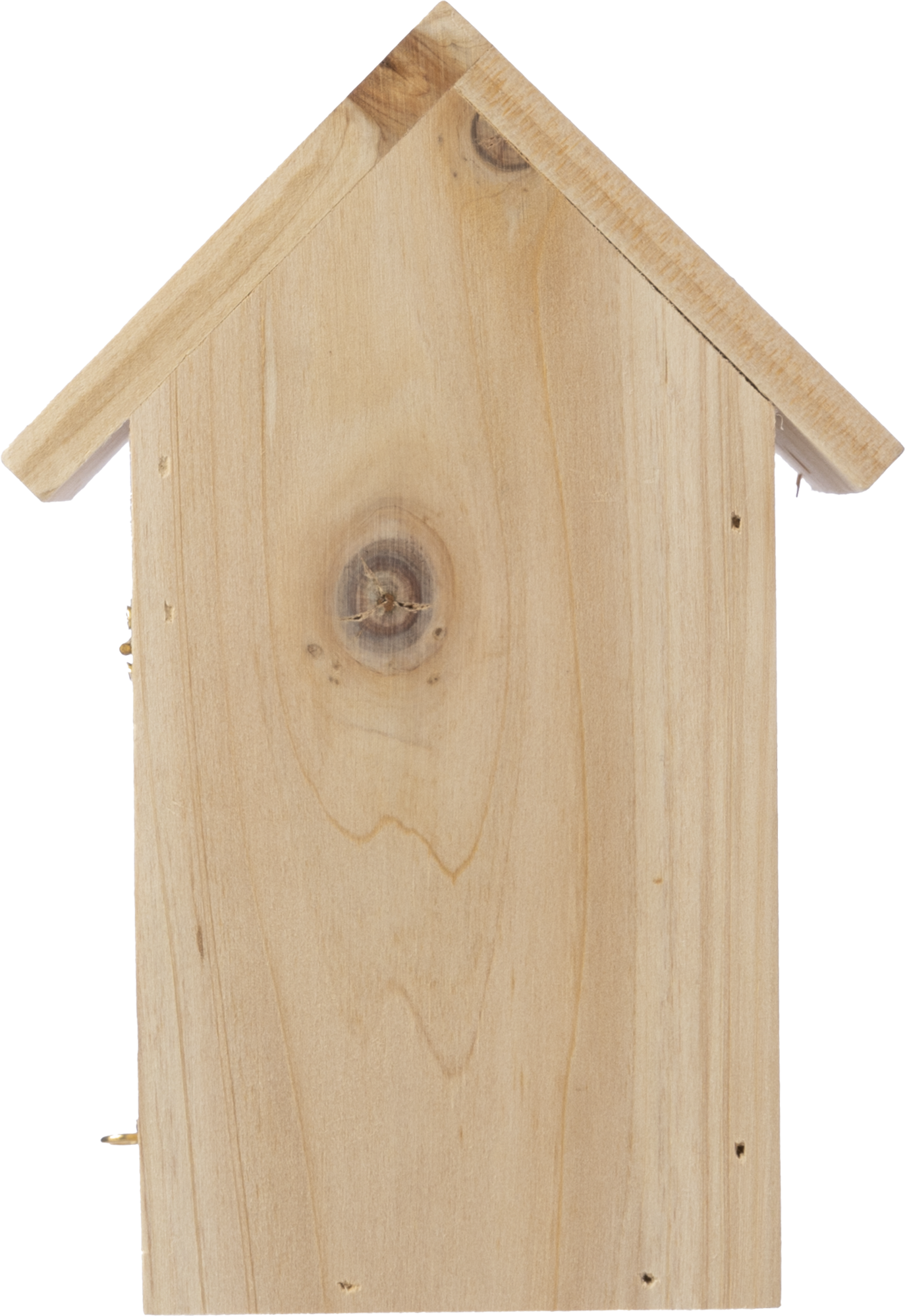 Pine wooden butterfly house with four front openings and a metal hanging hook to attach to the wall. Individually packaged in a brown carton box.