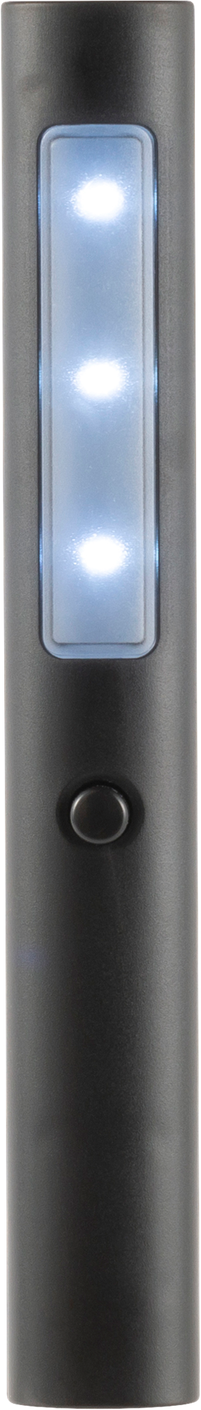 Work light with three LED lights and two magnets at the back. The light has two settings: blinking and constant.
